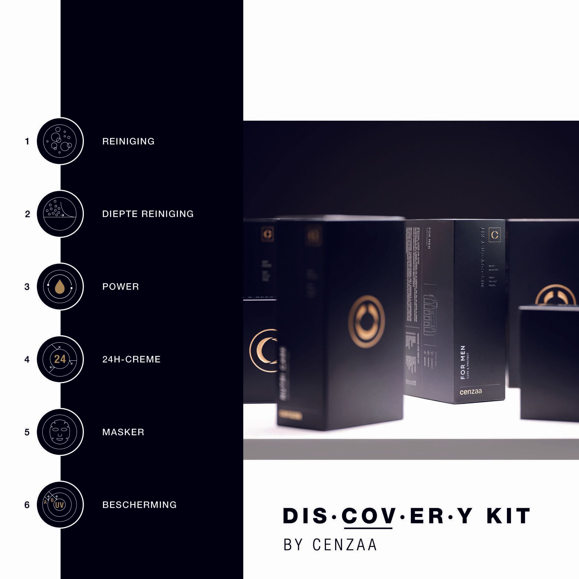 - Discovery Kit [waarde € 149,95] luxe box inclusief toilettas en 7 luxe travelsize producten voor thuis volgens het Cenzaa 6-stappenplan. Afgestemd op jouw huidtype: NUTRI MOIST hydrating & pre-aging, DESTRESS & REPAIR calming & repairing, AGE REDUCE anti-aging & firming.