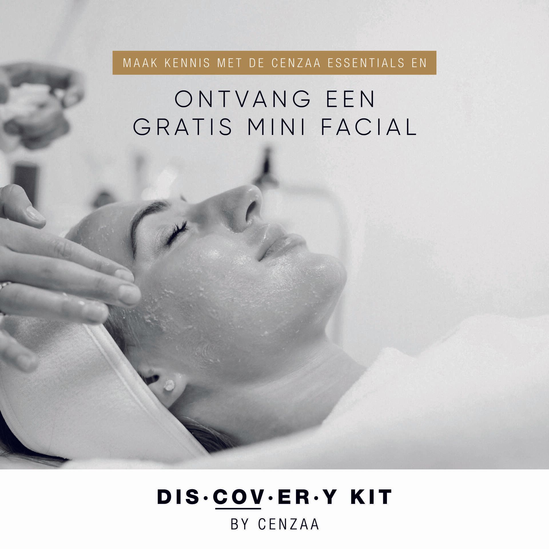 De vraag naar intensieve behandelingen en huidverbeterende producten groeit enorm, immers iedereen wil graag een stralende en gezonde huid. Ervaar 100% doeltreffende huidverbetering tijdens de behandeling én met de bijhorende productbox om thuis je huid te verbeteren. Gun jezelf een mooie en gezonde huid met één van de luxe Cenzaa Discovery Kits. Dé perfecte try-out met het 6 stappen huidverbeteringsprogramma van Cenzaa.